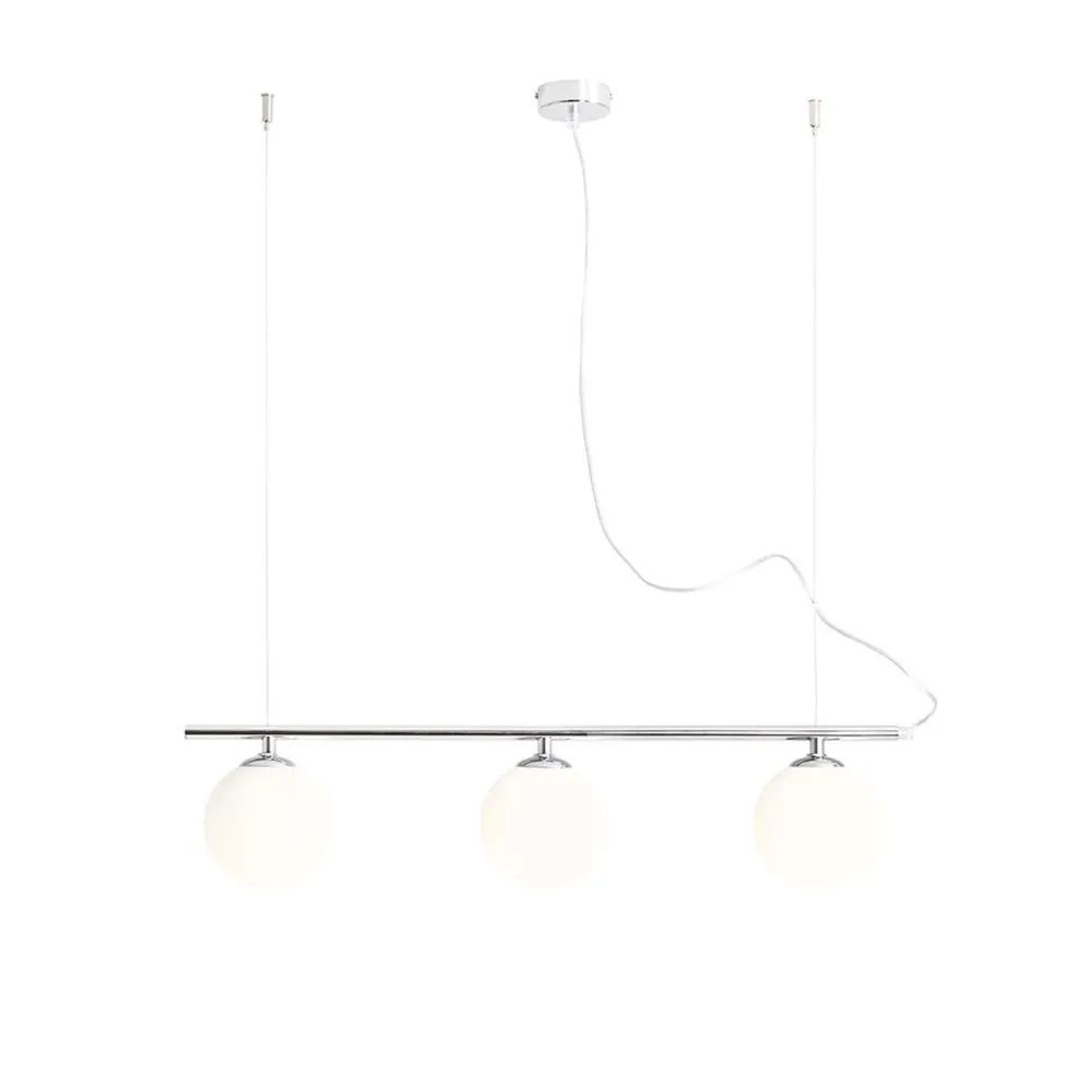 Moderne Hängelampe aus Metall und Glas in Chrom und Weiß
