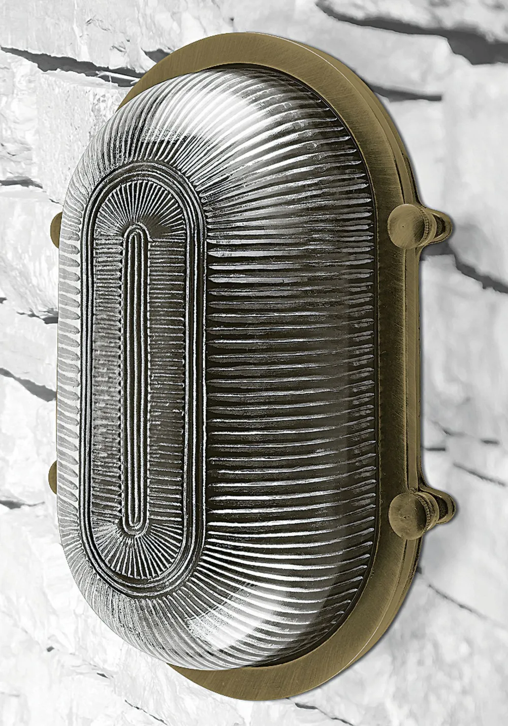 Maritime Außenwandleuchte aus massivem Messing und kunstvollem Riffelglas in Antik: ideal als Haustür Lampe, Terrassenbeleuchtung, Balkon Lampe, Carport Beleuchtung und Garagenlampe