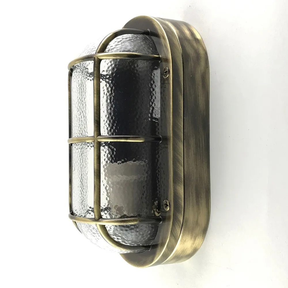 Maritime außen Wandlampe aus massivem Messing und kunstvollem Glas in Antik: ideal als Haustür Lampe, Terrassenbeleuchtung, Balkon Lampe, Carport Beleuchtung und Garagenlampe