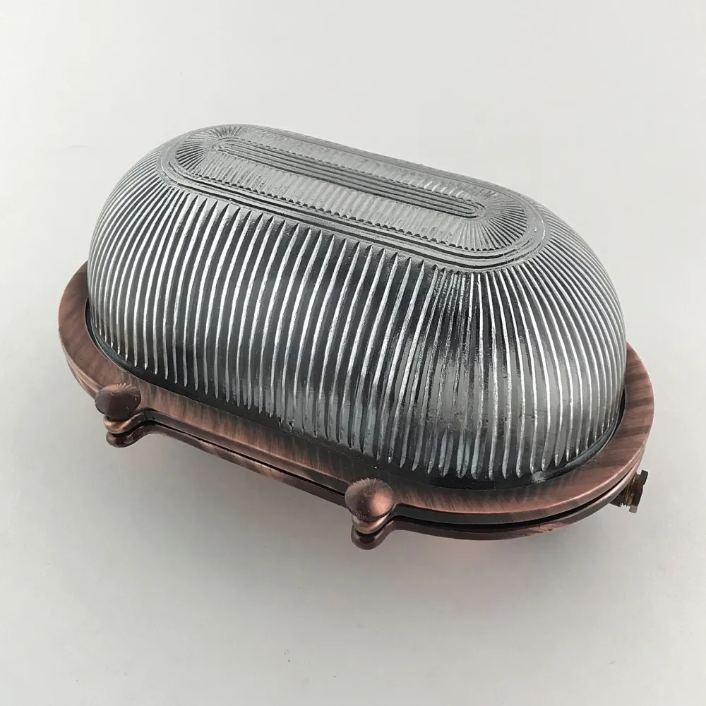 Maritime Außenwandleuchte aus massivem Messing und kunstvollem Riffelglas in Kupfer antik: ideal als Haustür Lampe, Terrassenbeleuchtung, Balkon Lampe, Carport Beleuchtung und Garagenlampe