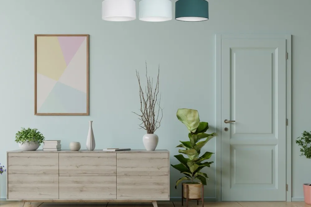 Die verschiedenfarbigen Stoffschirme sind dekorativ und streuen das Licht diffus und blendarm in den Raum