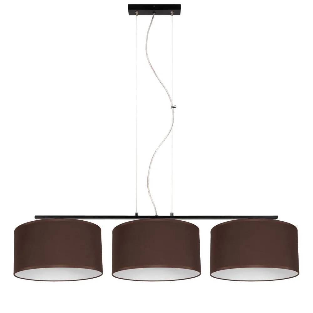 Qualität Made in EU Entdecke die perfekte Kombination aus Funktionalität und stilvollem Design mit unserer modernen Pendelleuchte aus Metall und Stoff. Diese elegante Esstischlampe ist nicht nur ein Blickfang, sondern auch eine praktische Lösung für hohe Decken. Mit ihrer großzügigen Hängetiefe sorgt sie für eine optimale Ausleuchtung über deinem Esstisch und schafft eine einladende Atmosphäre in deinem Wohnzimmer oder Esszimmer. Die braunen Stoffschirme dieser Leuchte streuen das Licht diffus und blendarm, sodass du und deine Gäste in einem angenehmen Licht speisen können. Egal, ob du ein romantisches Dinner oder ein geselliges Beisammensein planst, die Esstischleuchte passt sich deinen Bedürfnissen an. Dank der freien Leuchtmittelwahl kannst du die Helligkeit und Lichtfarbe individuell bestimmen und so die perfekte Lichtstimmung für jeden Anlass schaffen. Die hochwertige Verarbeitung und das ansprechende Design machen diese Lampe zu einem stilvollen Element in deinem Zuhause. Qualität Made in EU garantiert dir Langlebigkeit und Zuverlässigkeit. Ob du ein Fan von modernem, skandinavischem Design bist oder einfach nur eine funktionale Lösung suchst – diese Leuchte wird deinen Ansprüchen gerecht. Setze Akzente in deinem Wohnraum mit dieser einzigartigen Lampe, die nicht nur funktional ist, sondern auch dein Zuhause stilvoll ergänzt. Lass dich von der Kombination aus Metall und Stoff inspirieren und genieße die Vorzüge einer modernen Leuchte, die sowohl in der Optik als auch in der Funktionalität überzeugt.