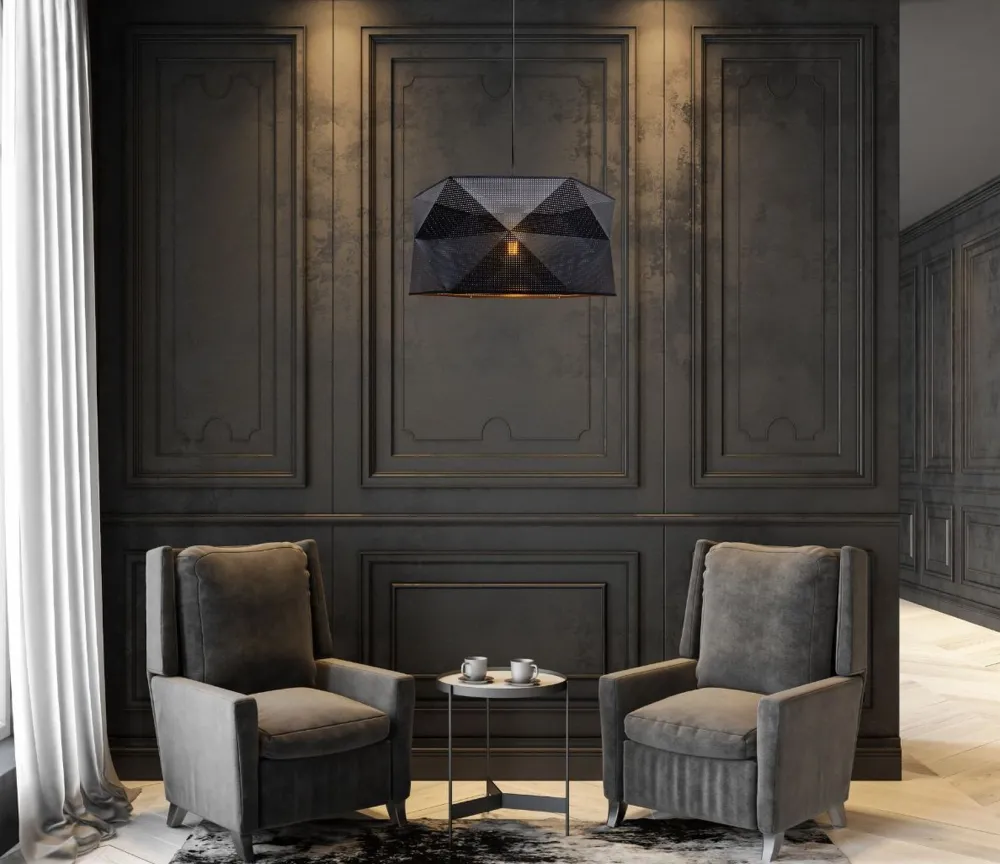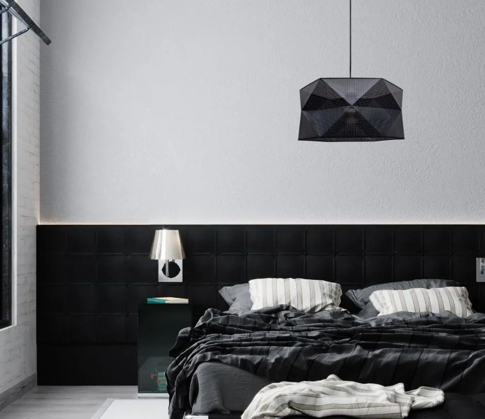 Moderne Pendelleuchte aus Metall und Stoff in Schwarz