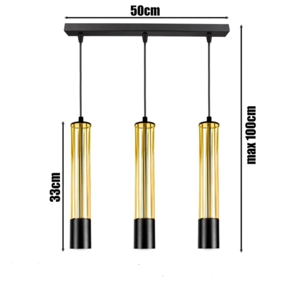 Qualität Made in EU Entdecke die zeitlose Eleganz der NETKEN Hängelampe, die mit ihrem stilvollen Design in Schwarz und Gold jeden Raum aufwertet. Mit einer Länge von 1000 mm und einer Höhe von 550 mm ist diese Pendelleuchte nicht nur ein Blickfang über deinem Esstisch, sondern auch eine perfekte Ergänzung für dein Wohnzimmer oder Esszimmer. Ihr zylindrisches Design sorgt für akzentuiertes Licht und schafft eine einladende Atmosphäre, die zum Verweilen einlädt. Die NETKEN Hängelampe ist für den Innenbereich konzipiert und bietet dank ihrer IP20–Schutzklasse eine sichere Nutzung in trockenen Räumen. Sie wird mit 230V betrieben und ist für bis zu drei GU10 Leuchtmittel mit einer maximalen Leistung von 40W geeignet. So kannst du die Lichtstimmung ganz nach deinen Wünschen anpassen – ob warmes, gemütliches Licht für gesellige Abende oder helles Licht für konzentriertes Arbeiten. Die selbsttragende Kabelaufhängung ermöglicht eine flexible Installation, sodass du die Lampe sowohl an hohen als auch an niedrigen Decken anbringen kannst. Die Kombination aus hochwertigem Metall und dem edlen Gold-Finish macht diese Pendelleuchte zu einer idealen Wahl für designbewusste Käufer, die Wert auf Qualität und Stil legen. Ob als Küchenlampe, Esstischlampe oder Wohnzimmerlampe – die NETKEN Hängelampe fügt sich harmonisch in jedes Interieur ein und setzt stilvolle Akzente. Wähle die NETKEN Hängelampe für dein Zuhause und erlebe, wie sie nicht nur Licht, sondern auch Lebensqualität in deine Räume bringt.