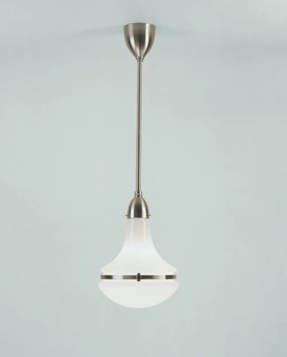 Der geweißte Glasschirm der Hängelampe bringt eine blendarme Beleuchtung über Deinen Esstisch in Wohnzimmer, Esszimmer und Küche