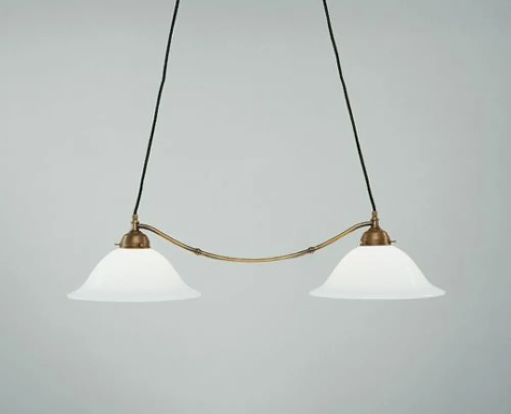 Jugendstil Pendelleuchte aus Messing und Glas