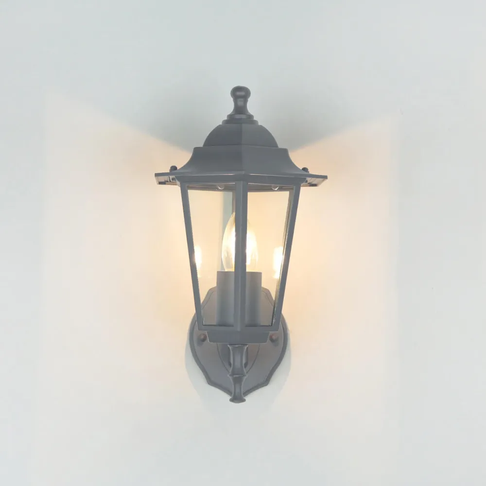 Die rustikale Außenleuchte besteht aus witterungsbeständigem Aluminiumdruckguss und robustem Glas