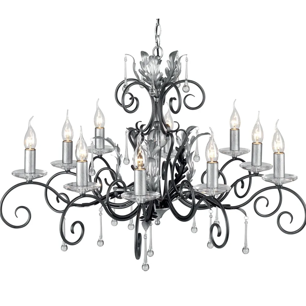 Opulenter Kronleuchter mit 10 Armen in Silber und Schwarz