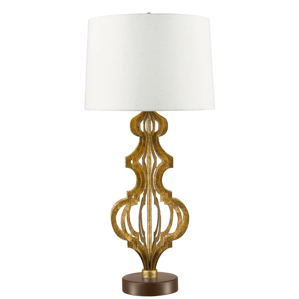 Dekorative Tischleuchte mir kunstvoller Säule in Gold und Weiß