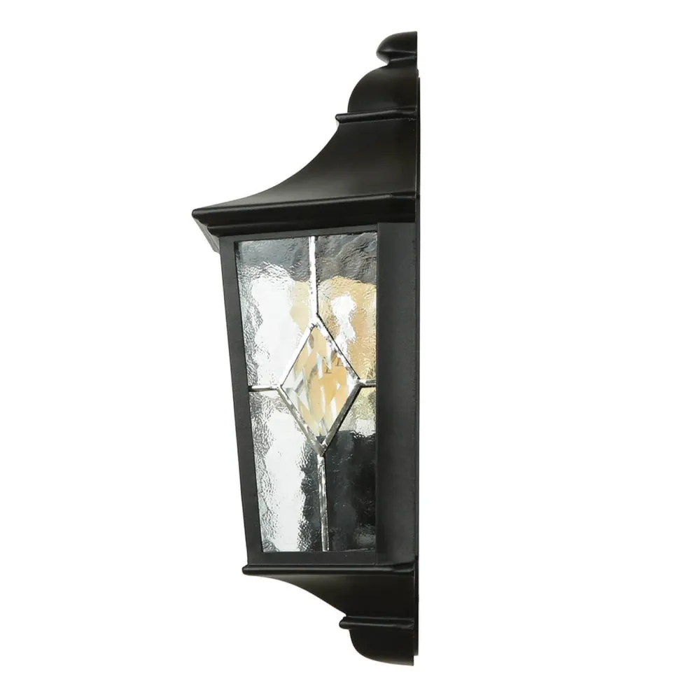Rustikale Außenwandleuchte aus wetterfestem Metall und Glas