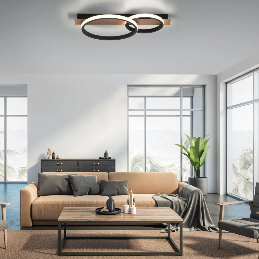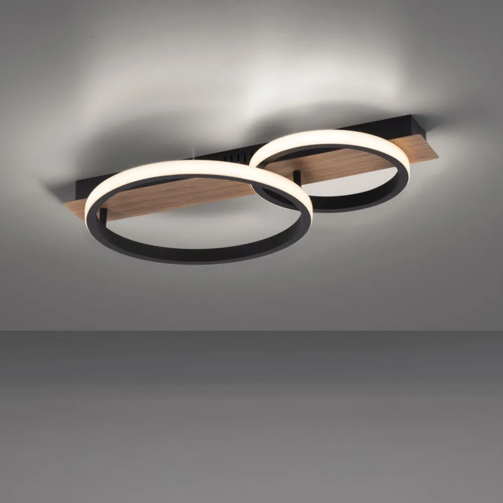 Moderne LED Deckenleuchte aus Holz und Metall in Schwarz
