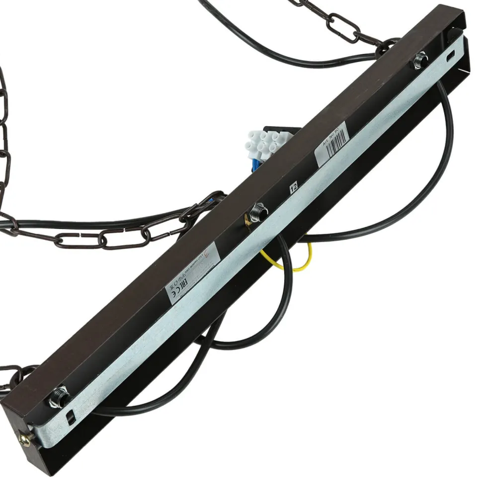 Maße Deckenhalterung: 405 mm x 50 mm | Bohrlochabstand Aufhängung: 355 mm | Schirmhöhe: 95 mm | Kettenglieder einzeln herausnehmbar