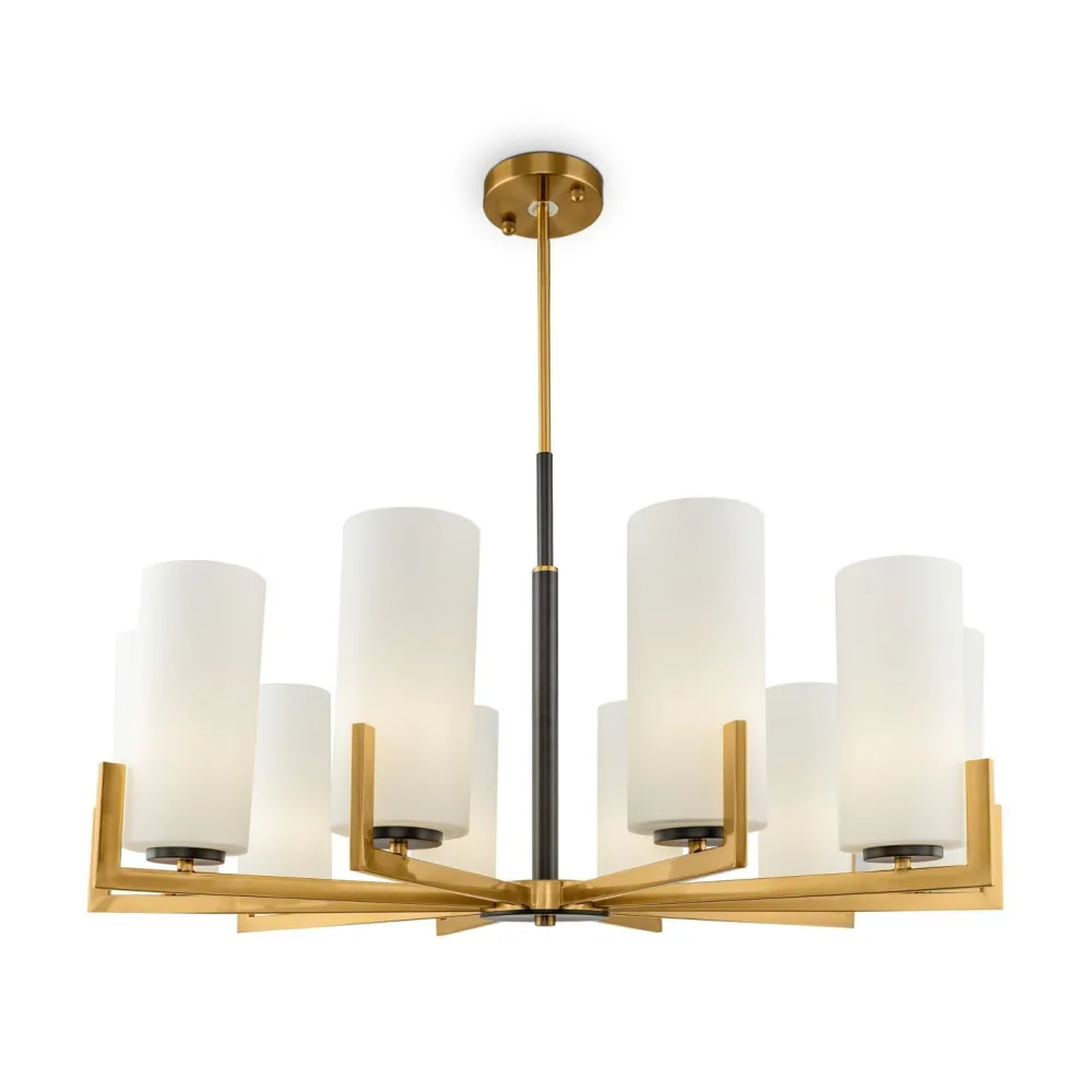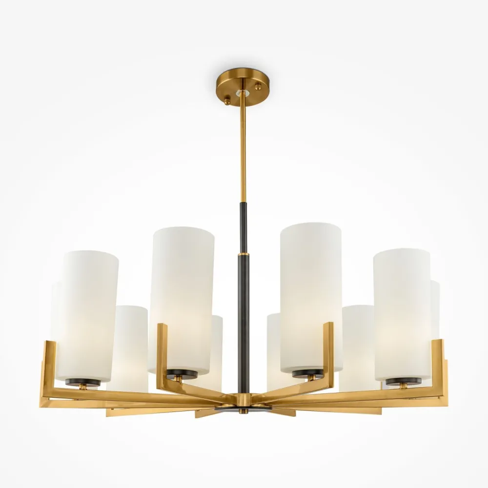 Moderner Kronleuchter mit Lampenschirmen aus satiniertem Glas