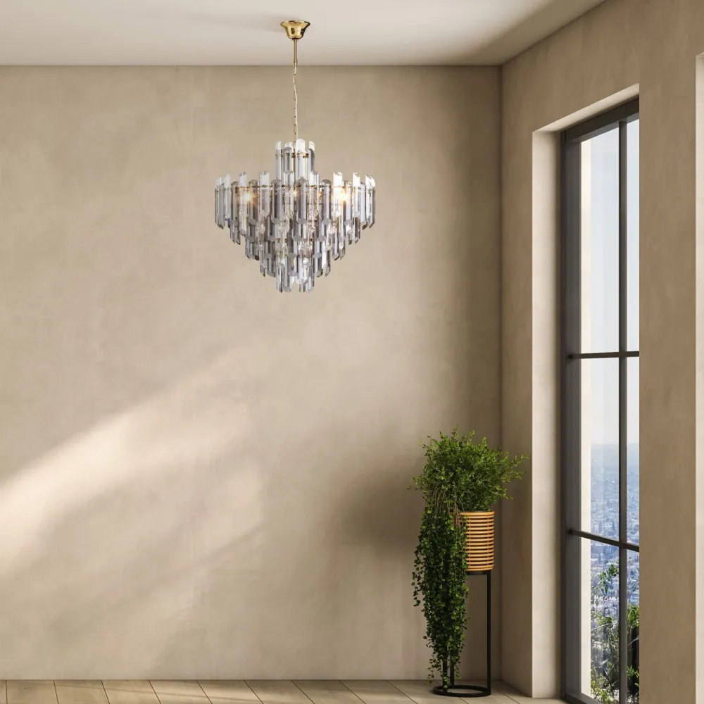 Die Kristalle sorgen für ein funkelndes Lichtspiel und machen die Hängelampe zu einem dekorativen Highlight in Wohnzimmer, Schlafzimmer und Esszimmer