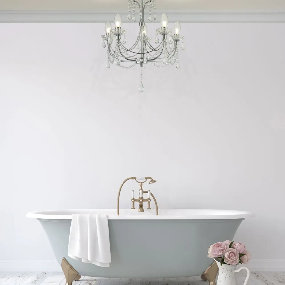 Der Kristallleuchter ist dank Spritzschutzklasse IP44 spritzwassergeschützt und bietet hohen Schutz vor Dampf und Nässe: so wird jedes Bad zu einer luxuriösen Wohlfühloase