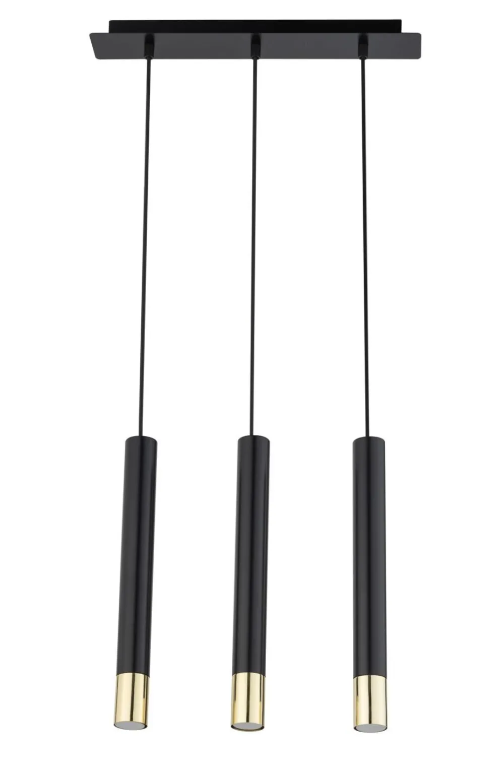 Schmale Pendelleuchte in Schwarz und Gold
