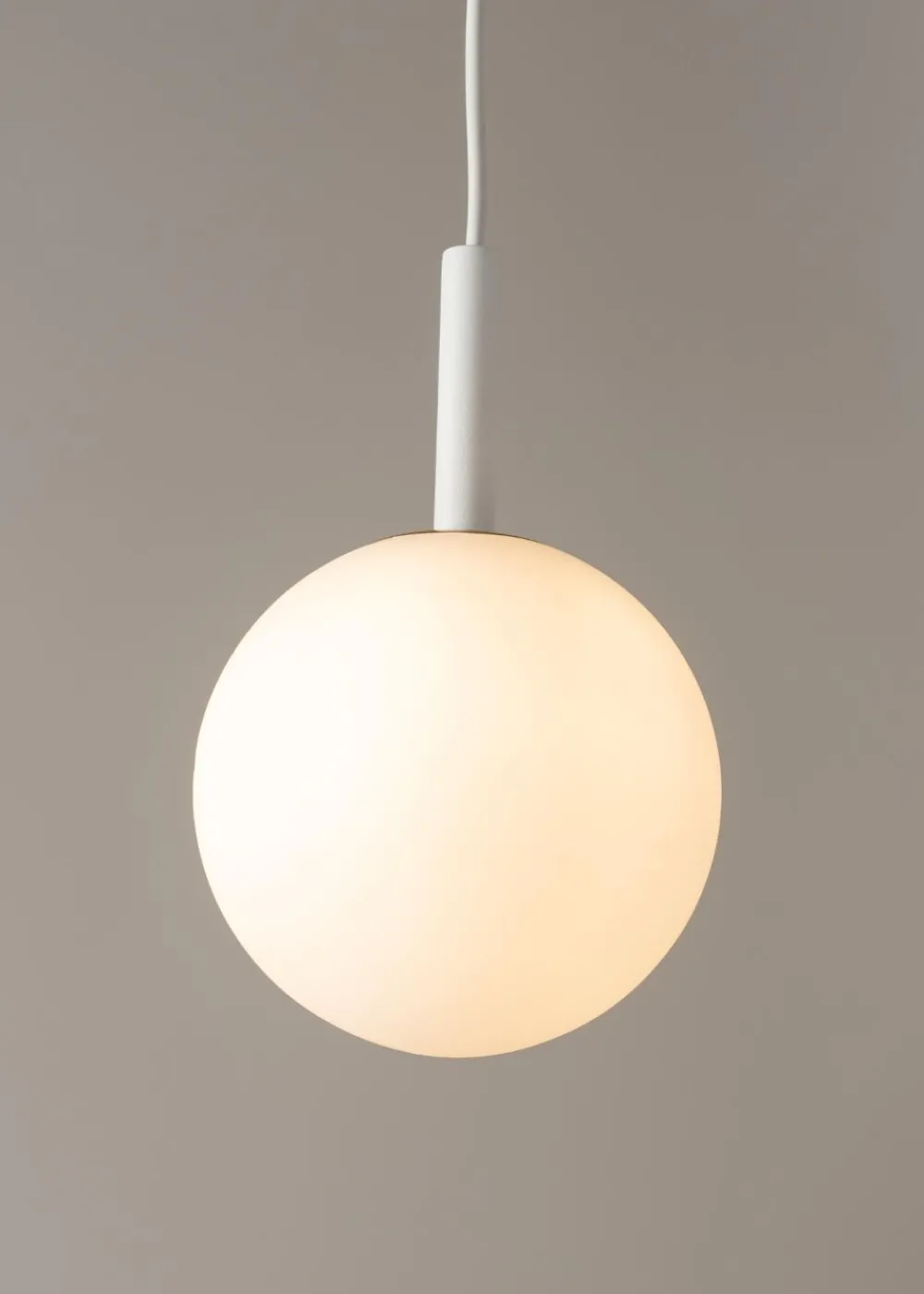 Der satinierte Kugelschirm streut das Licht blendarm, sodass eine wohnliche Atmosphäre entsteht