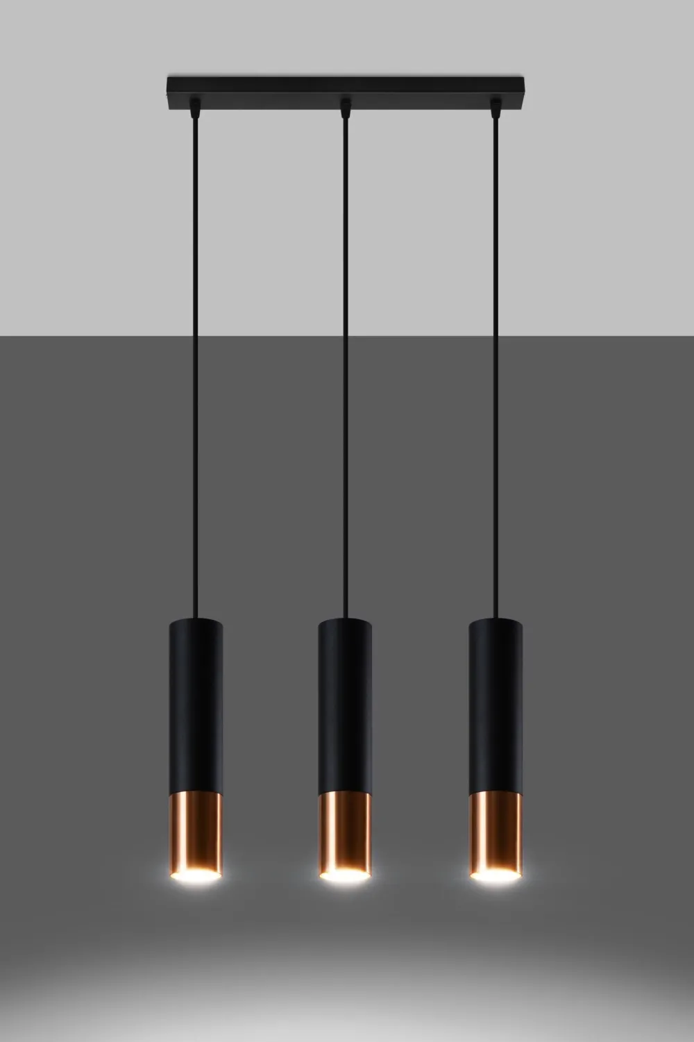 Moderne Pendelleuchte in Schwarz und Kupfer