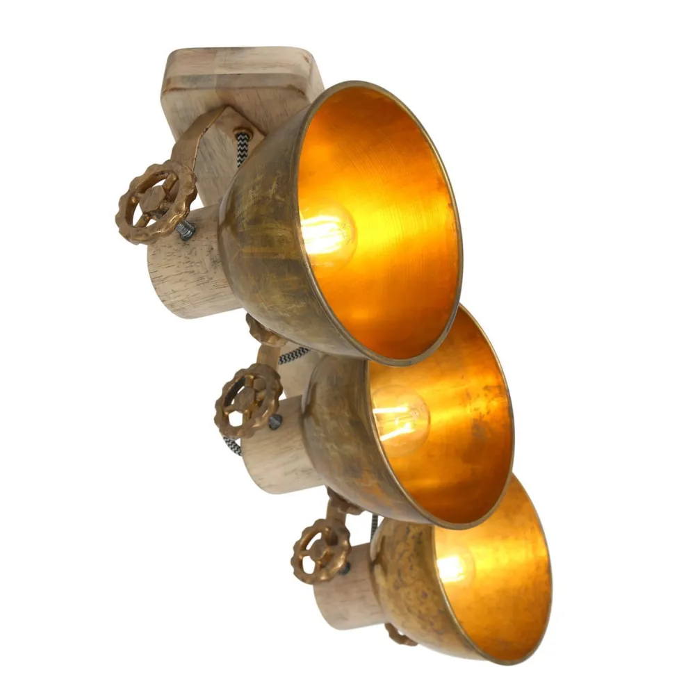 Industrial Deckenspot aus Holz und Metall in Bronze