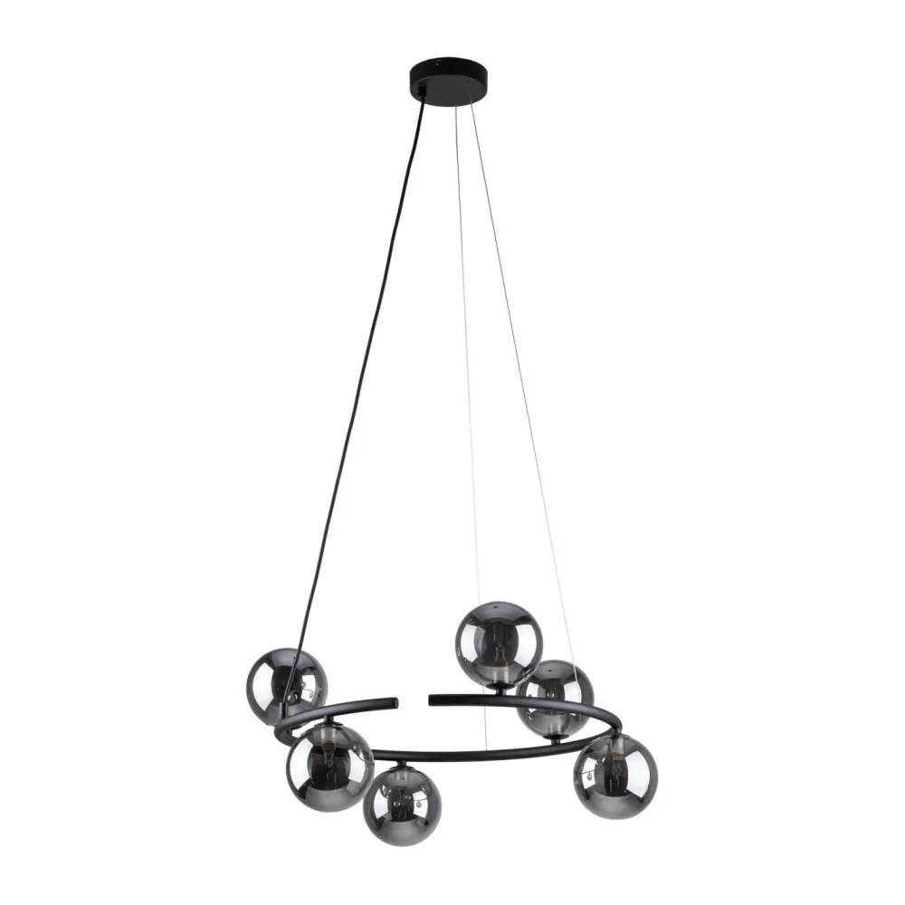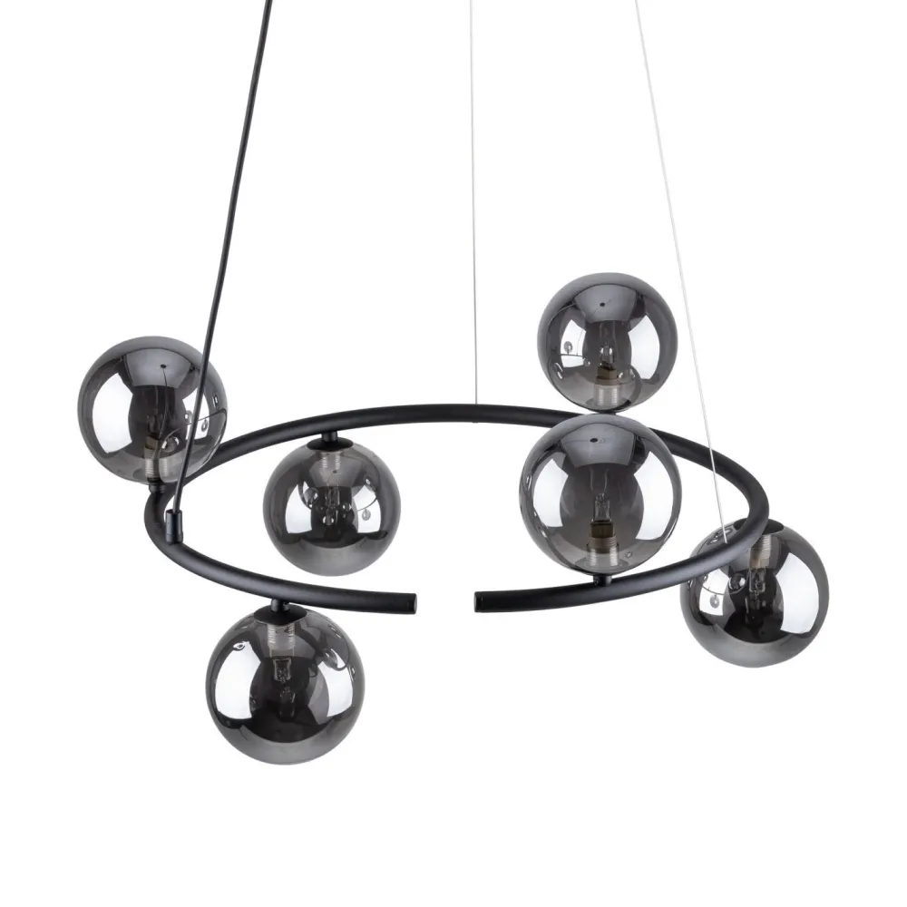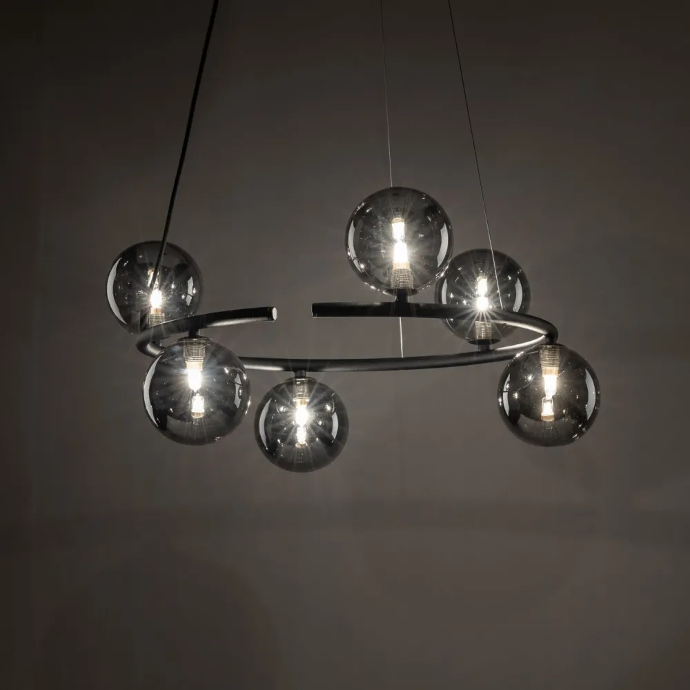 Elegante Pendelleuchte mit Kugelschirmen aus Rauchglas