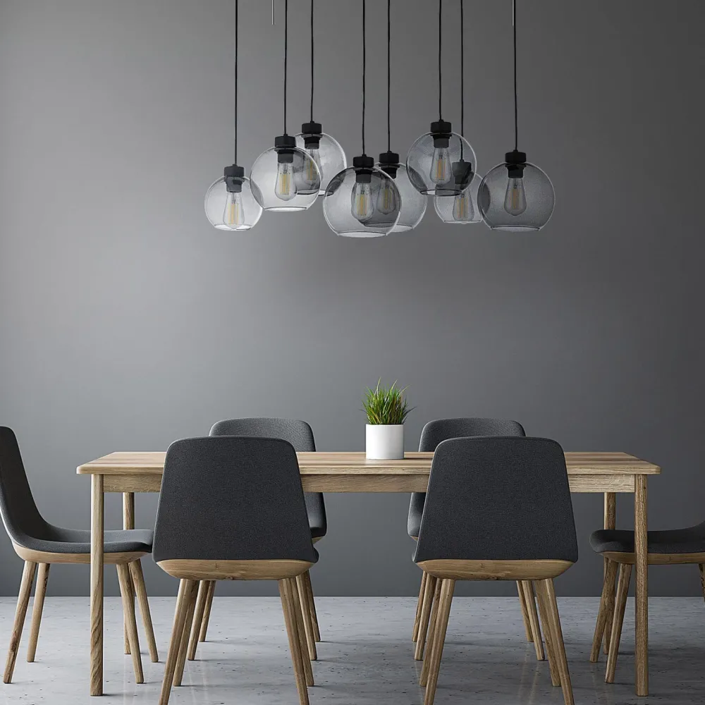 Die 8 Pendel sind versetzt angeordnet, sodass die Hängeleuchte eine breite Grundfläche bildet – perfekt für große Räume oder über einem breiten Esstisch