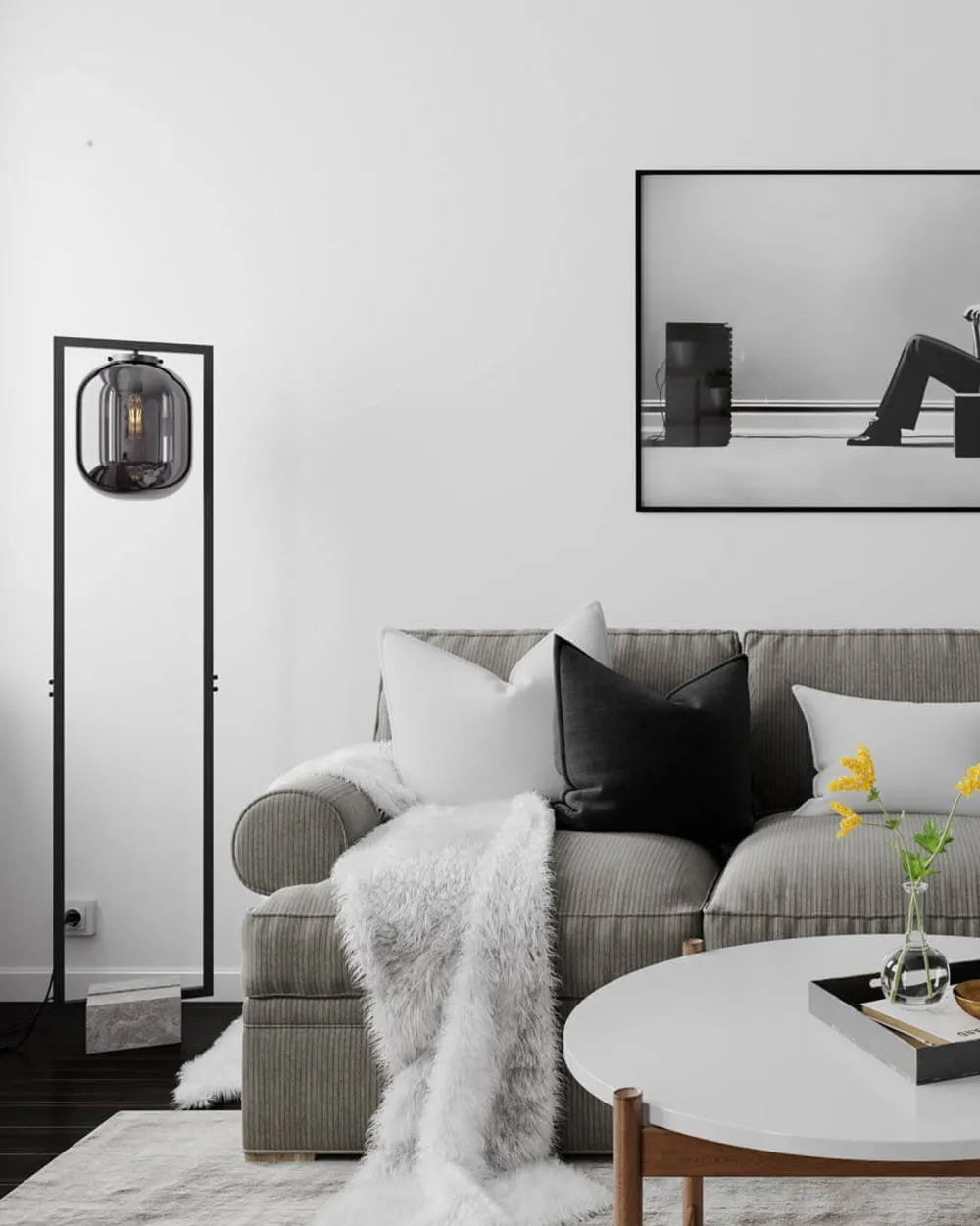 Die Kombination von Farben und Materialien sorgt für einen urbanen Look, der sich mit vielen Einrichtungsstilen kombinieren lässt – eine vielseitige Stehleuchte