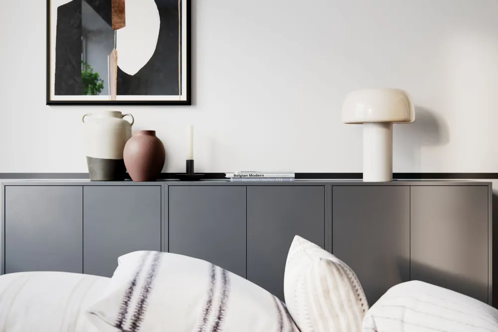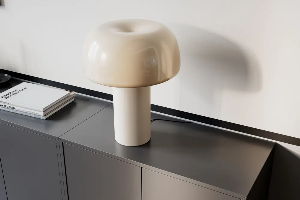 Ein besonders stilvolles Element ist der Mix aus mattem Fuß und glänzendem Schirm, der der Tischleuchte einen edlen Charakter verleiht