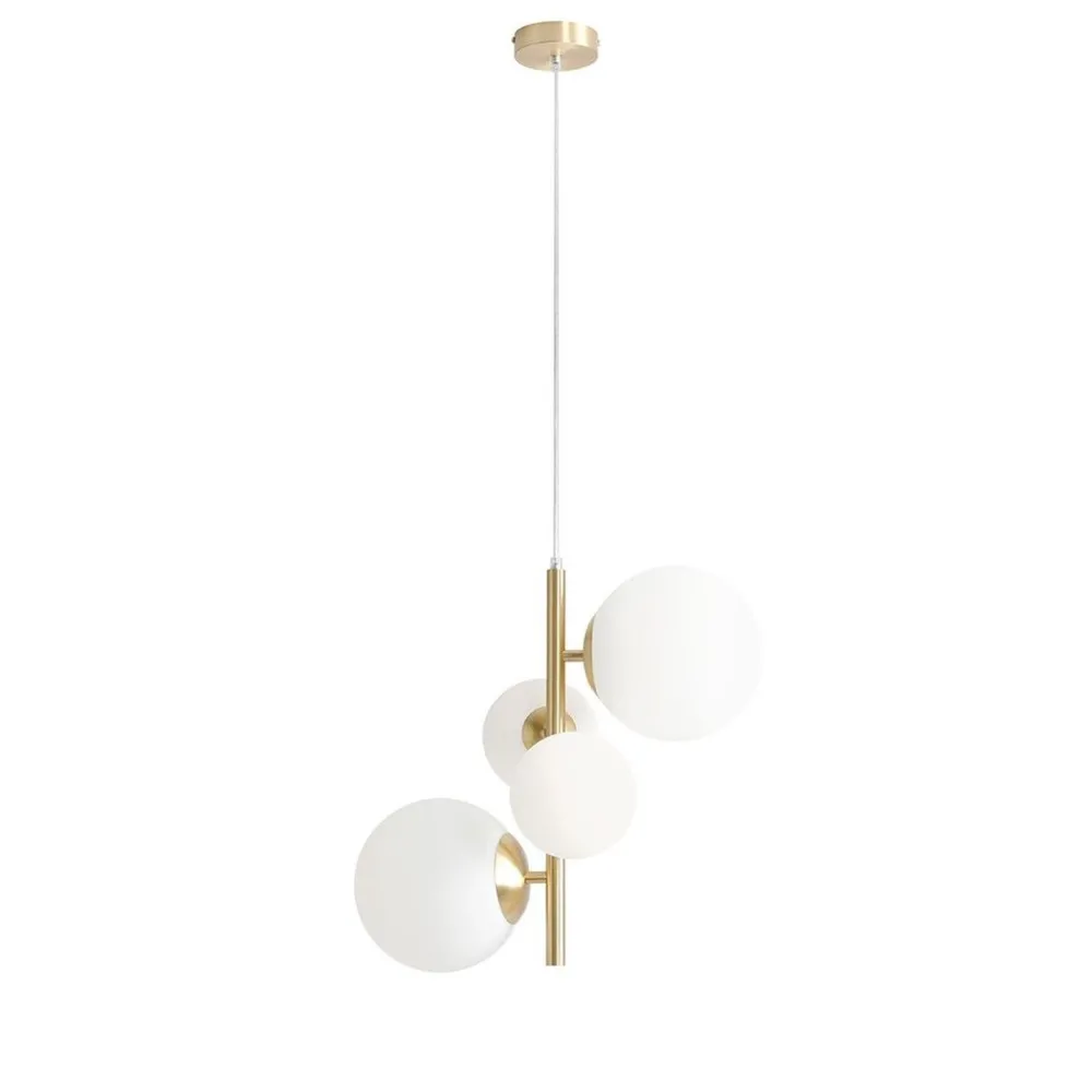 Moderne Pendelleuchte aus Metall und Glas in Messing und Weiß