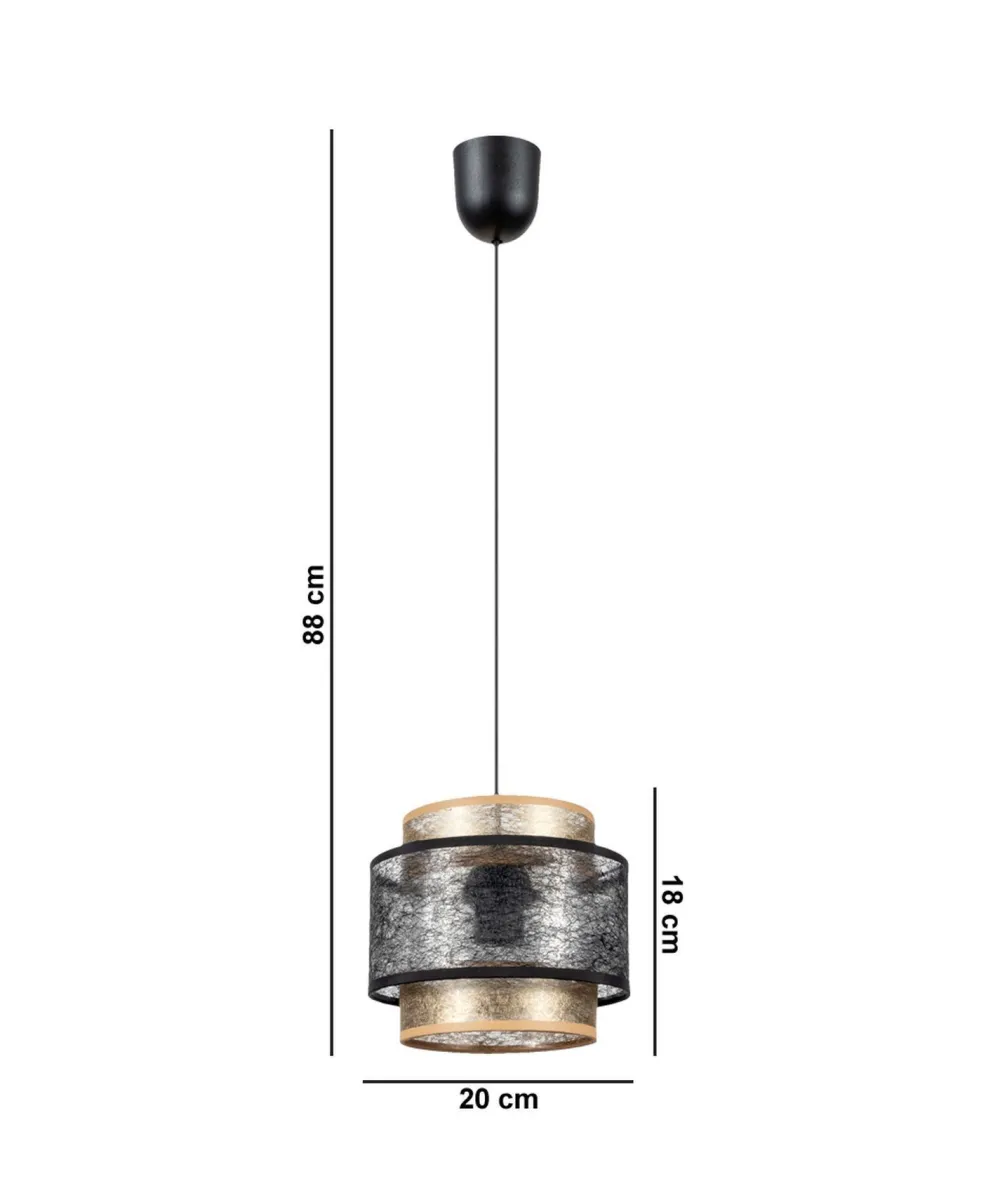Moderne Pendelleuchte aus Metall und Stoff in Schwarz und Gold