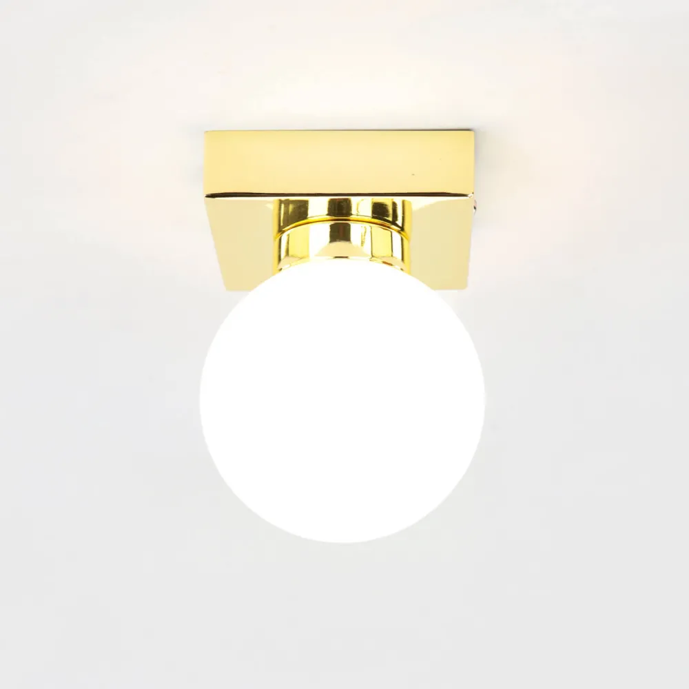 Elegante Deckenleuchte für das Badezimmer mit Glas Kugelschirm in Weiß und Gold