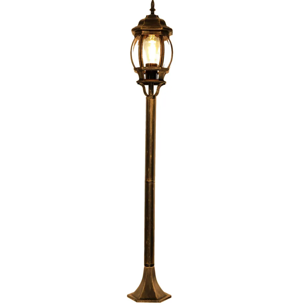 Rustikale Wegeleuchte in Schwarz Kupfer aus witterungsbeständigem Aluminium und robustem Glas