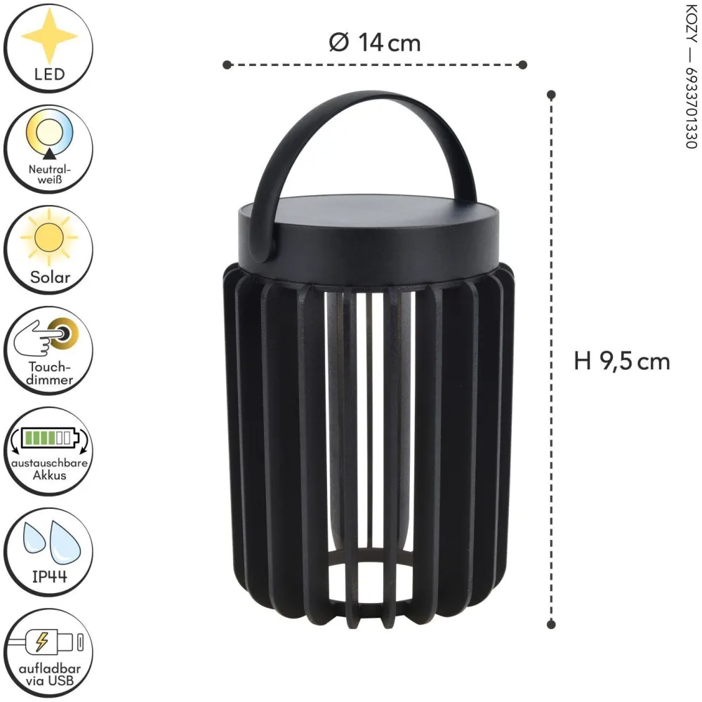 Moderne LED Solar Tischleuchte in Schwarz