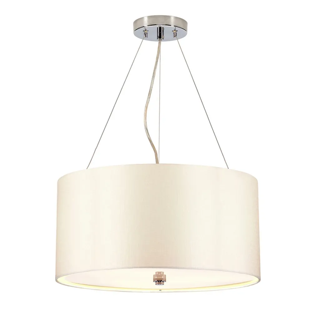 Runde Deckenleuchte mit Stoffschirm in Creme und Chrom