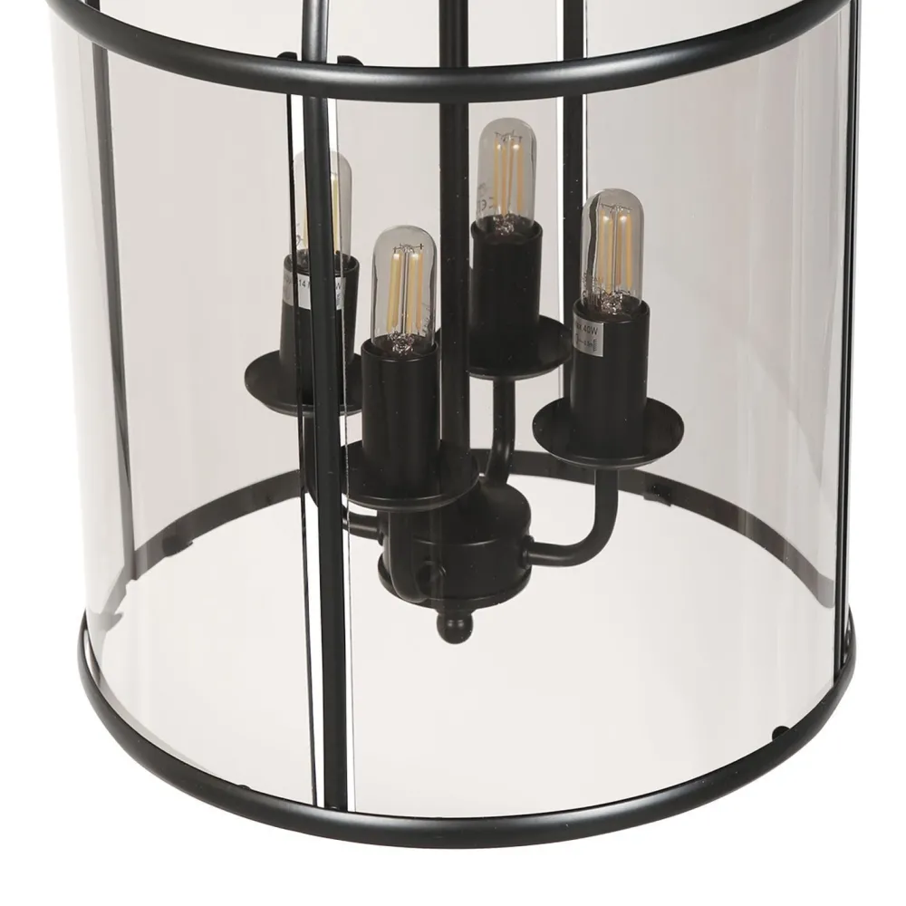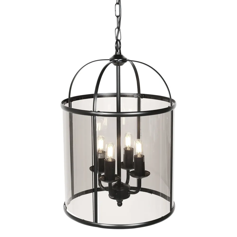 Klassische Pendelleuchte aus Metall und Glas in Schwarz und Rauchgrau
