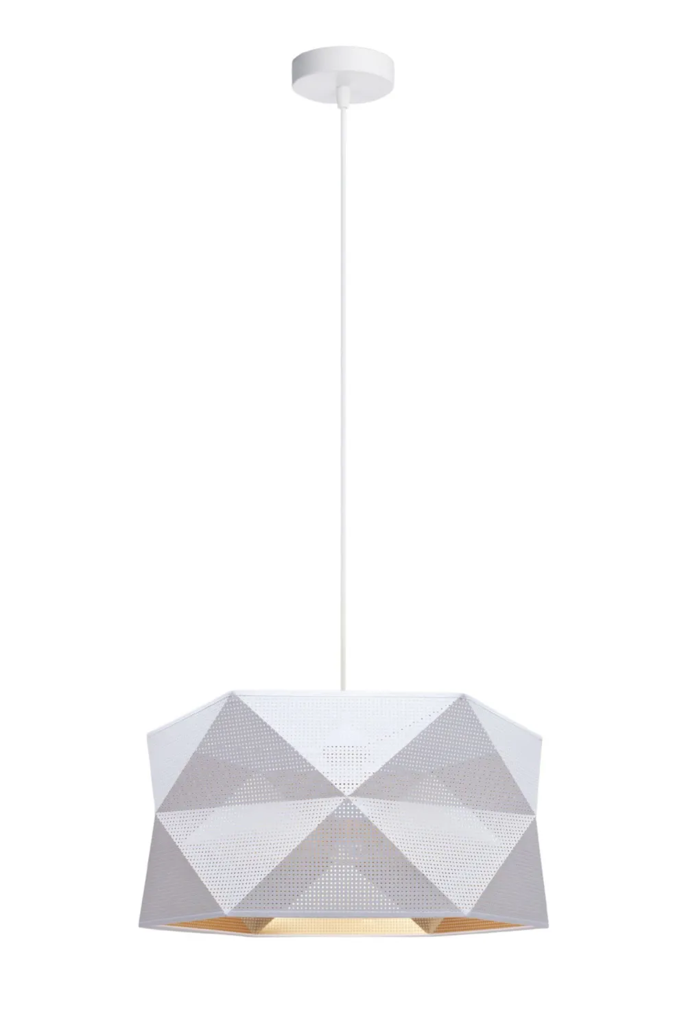 Moderne Hängelampe aus Metall und Stoff in Weiß und Beige