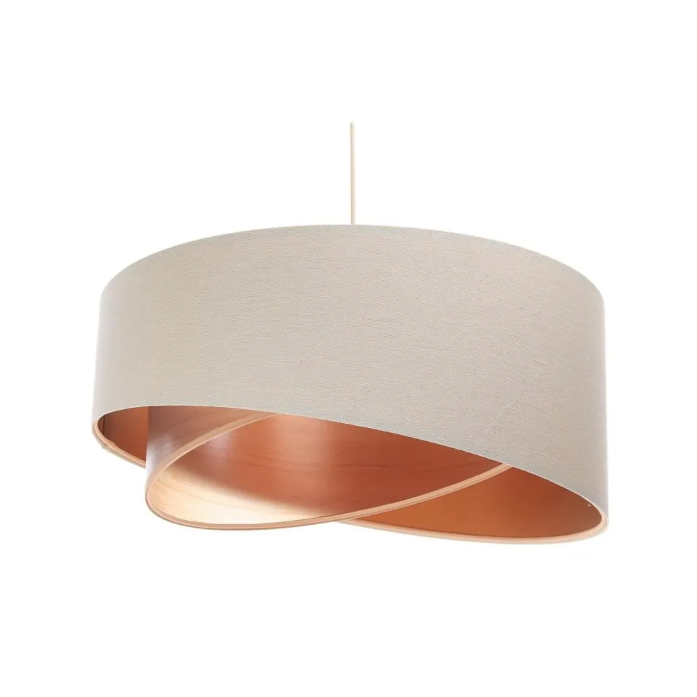 Elegante Pendelleuchte in Beige, Kupfer (Holzoptik) für Wohnzimmer, Schlafzimmer und Esszimmer