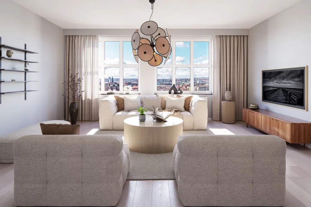 Die Kreise aus Seide in verschiedenen Beige-Tönen sorgen für einen einzigartigen Look, der dekorativ und dennoch wohnlich ist – ein absolutes Highlight in jedem Raum