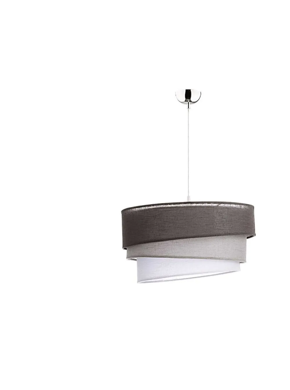 Außergewöhnliche Hängeleuchte mit einem dreiteiligen Lampenschirm in verschiedenen Grautönen