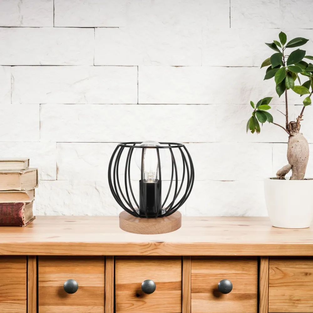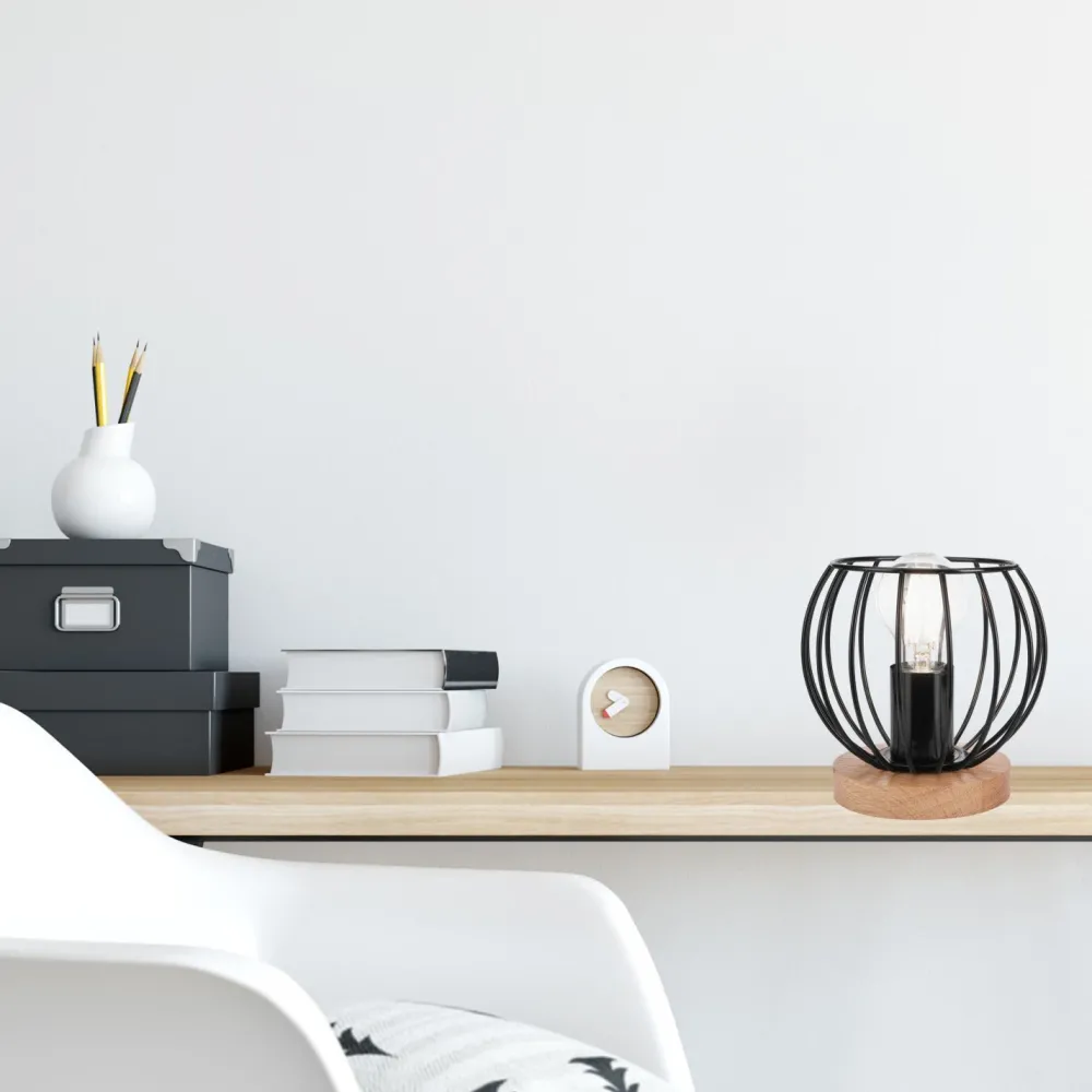 Kleine Tischlampe mit Draht Schirm in Schwarz