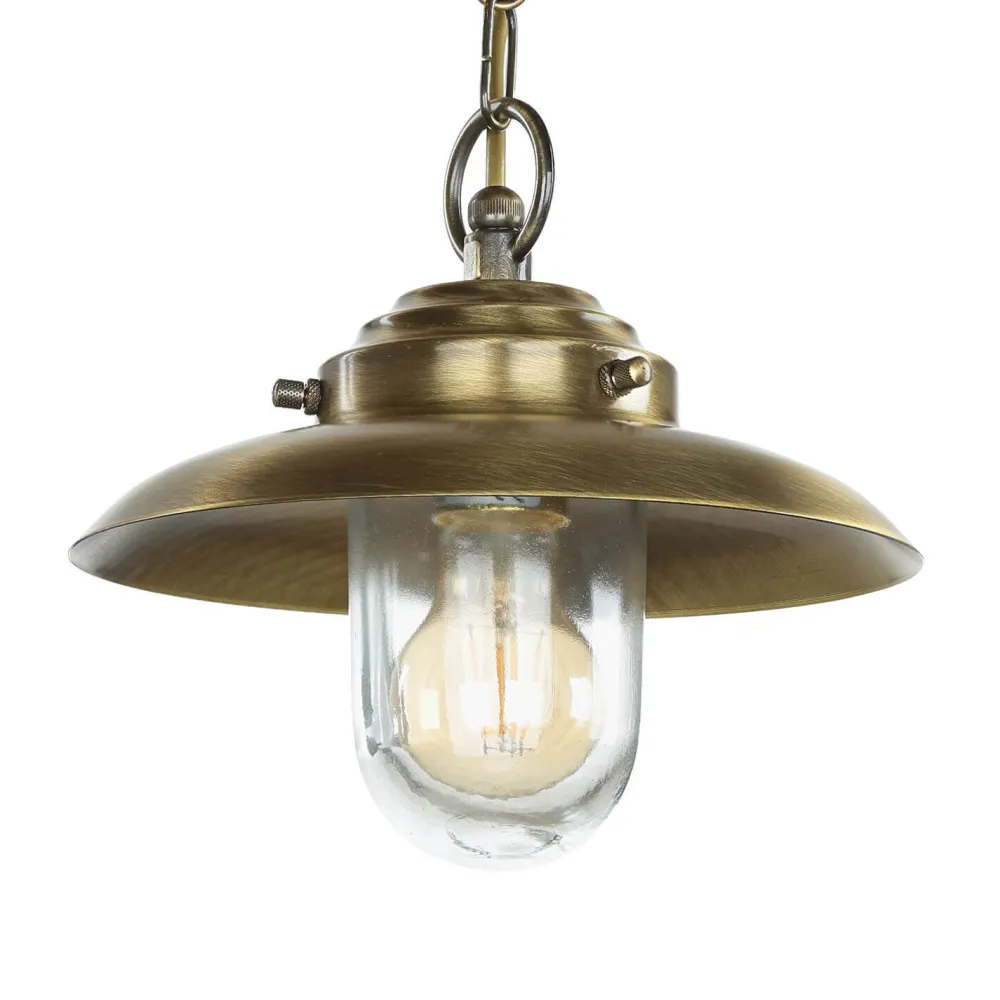 Die Hängelampe ist einer antiken Schiffslampe nachempfunden und setzt im Eingangsbereich, auf dem Balkon oder der Terrasse dekorative Akzente