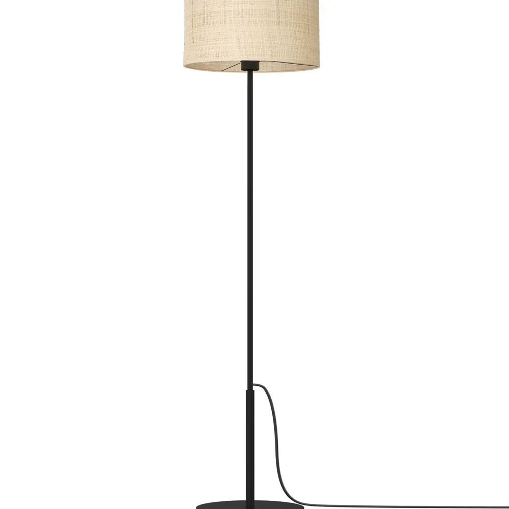 Natürliche Stehleuchte aus lackiertem Stahl, Rattan und Kunststoff in Schwarz und Natur
