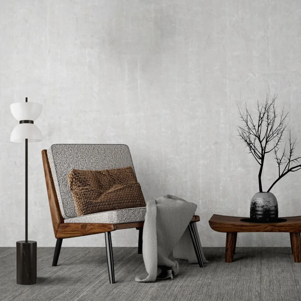 Kleine LED Stehleuchte mit Marmor Sockel für das Wohnzimmer im modernen Design