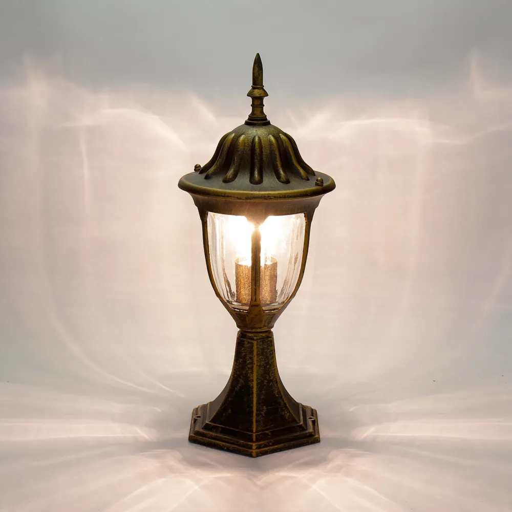 Der antike Farbton unterstreicht das dekorative Design, was die Außenleuchte zu einem echten Blickfang macht (Der Goldton ist handgewischt – dadurch sind leichte Farbabweichungen (heller oder dunkler) möglich)