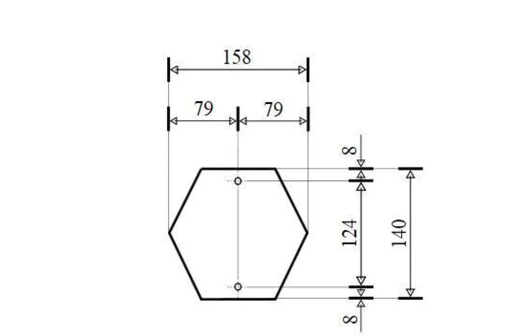 Maße Fuß: 158 x 140 mm | Bohrlochabstand: 124 mm