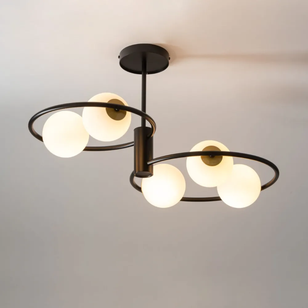 Die Kugelschirme aus Glas streuen das Licht blendarm für ein wohnliches Ambiente Zuhause