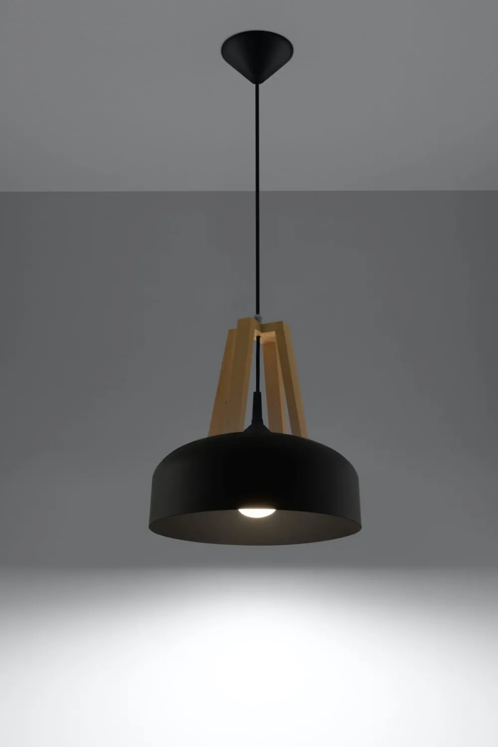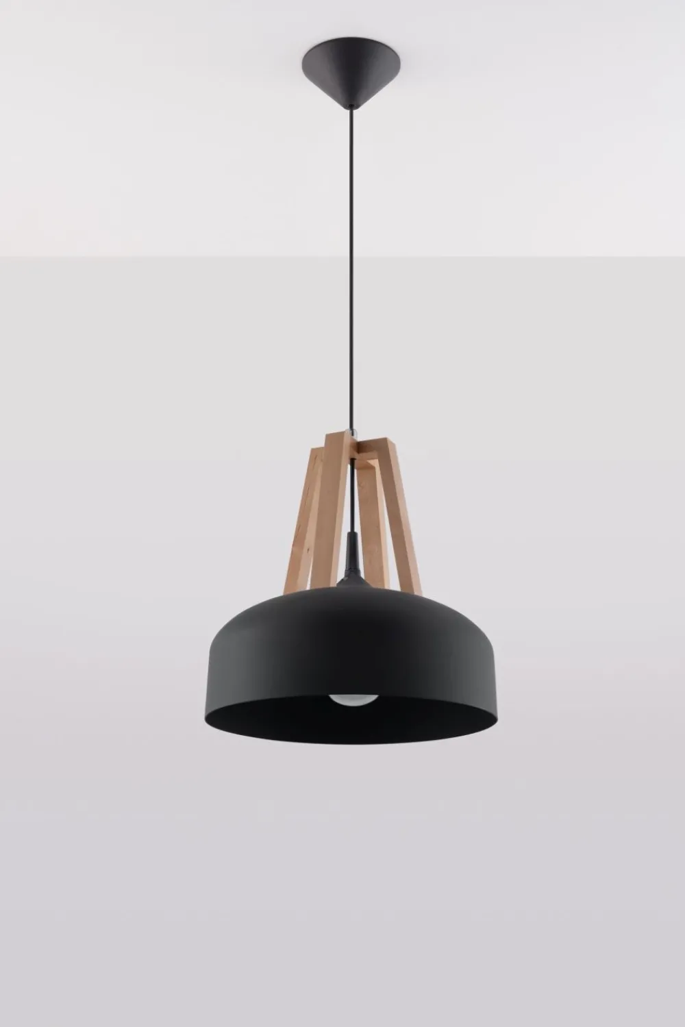 Schwarze Retro Hängeleuchte aus Metall und Holz
