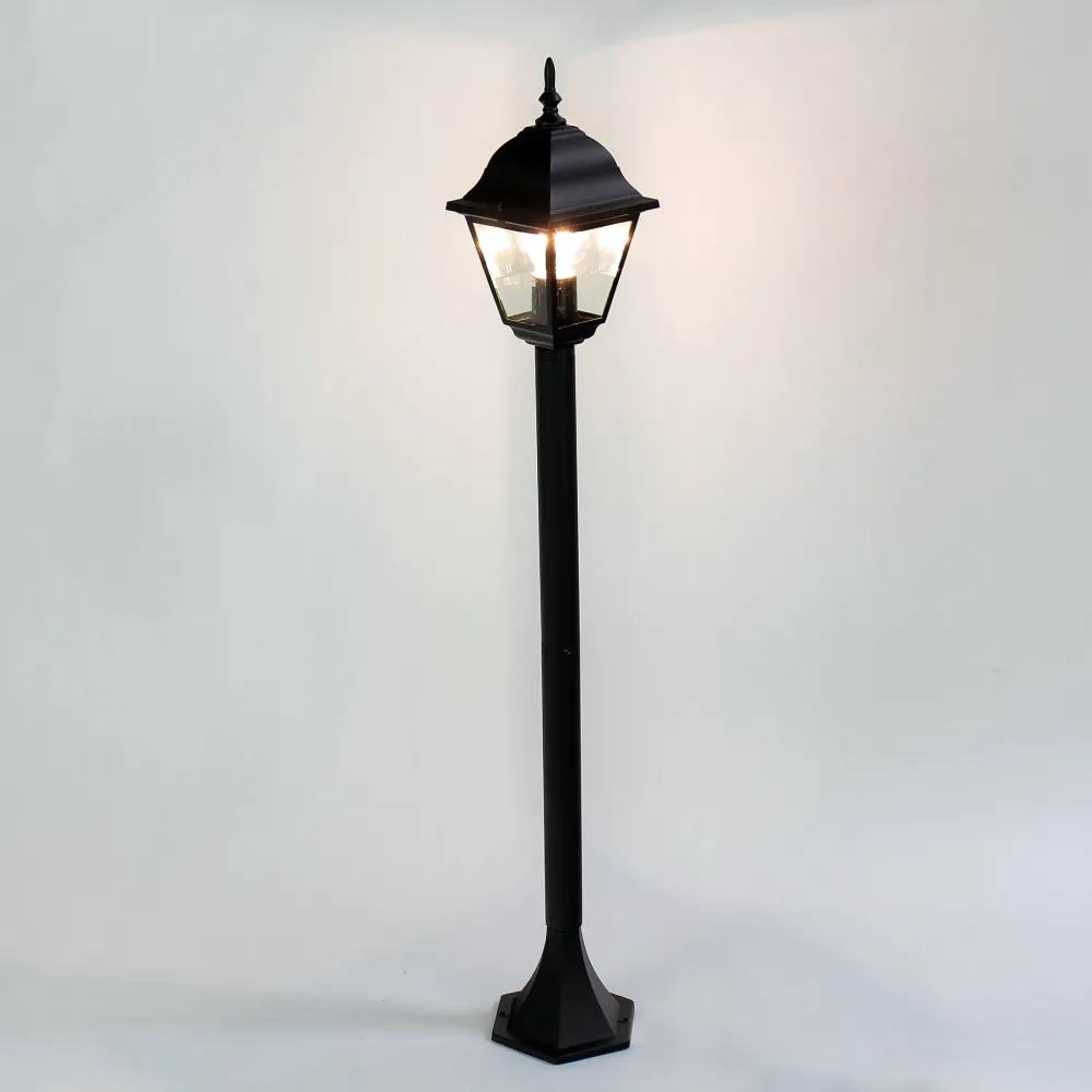 Rustikale Stehleuchte für Außen in zeitlosem Schwarz
