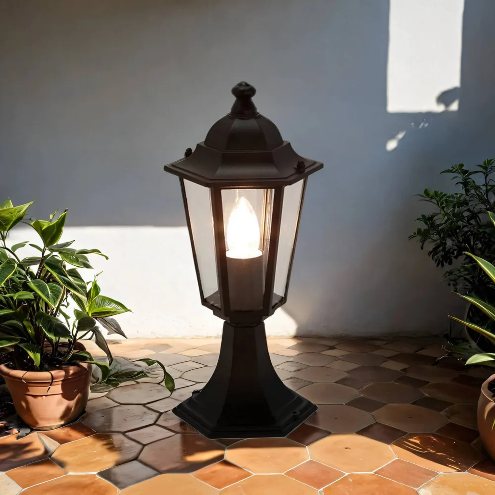 Rustikale Sockelleuchte für Außen in Schwarz