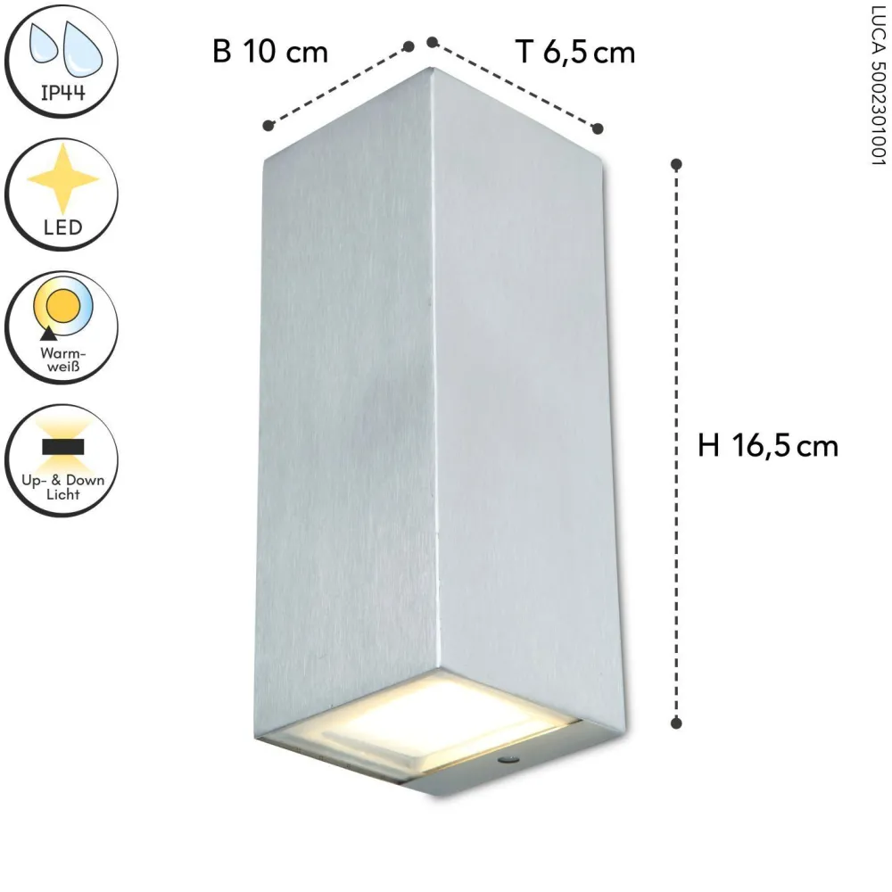 Zeitlose LED Außenwandlampe aus Edelstahl in Nickel