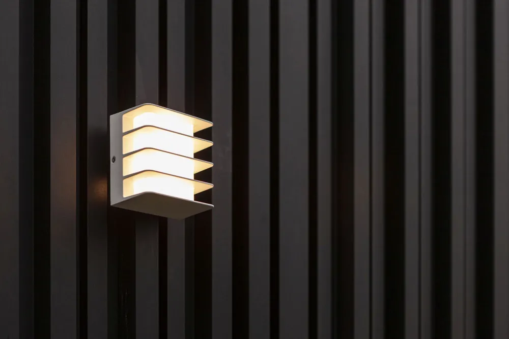 Moderne LED Außenleuchte für die Wand aus Aluminium in Weiß